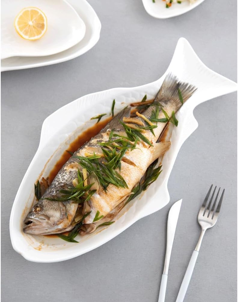 DescriptionFish Shaped Plate Ceramic Fish Dish Creative Ceramic Serving Decorative Platter Snack Fruit Storage PlatterFeaturesColor: White;Dark greenMaterial: CeramicSize: 27.8x14.5x1.5cmSize: 33.5x18.5x2cmSize: 39x20.5x2.5cmPackage Including1 pcs x plate