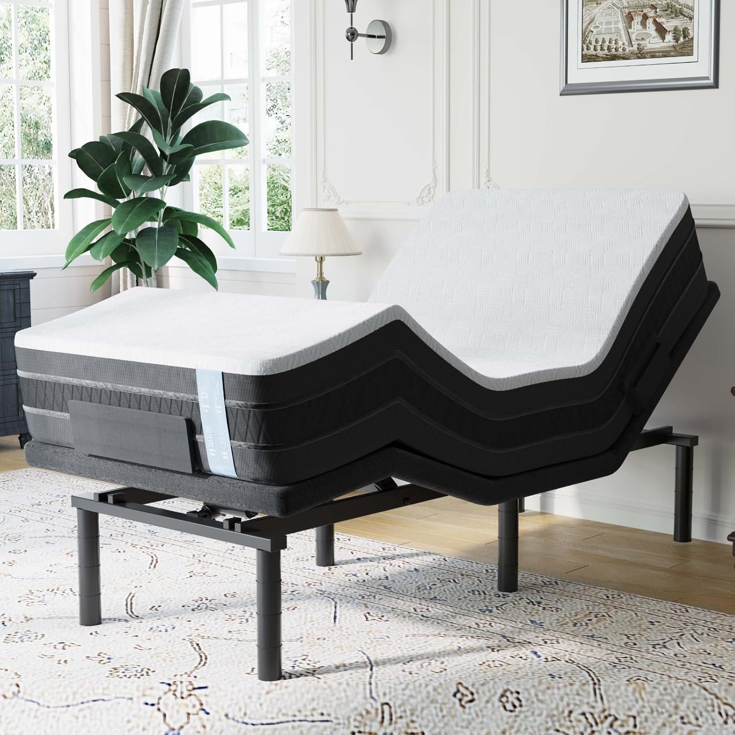 • DURABLE & STURDY: The whisper-quiet motor underwent 10,000 fatigue tests at 750 lbs to ensure quality and durability. Six-legged design and sturdy integrated steel frame ensure the stability of the adjustable bed base in case of tipping over. Max.750 lbs weight capacity